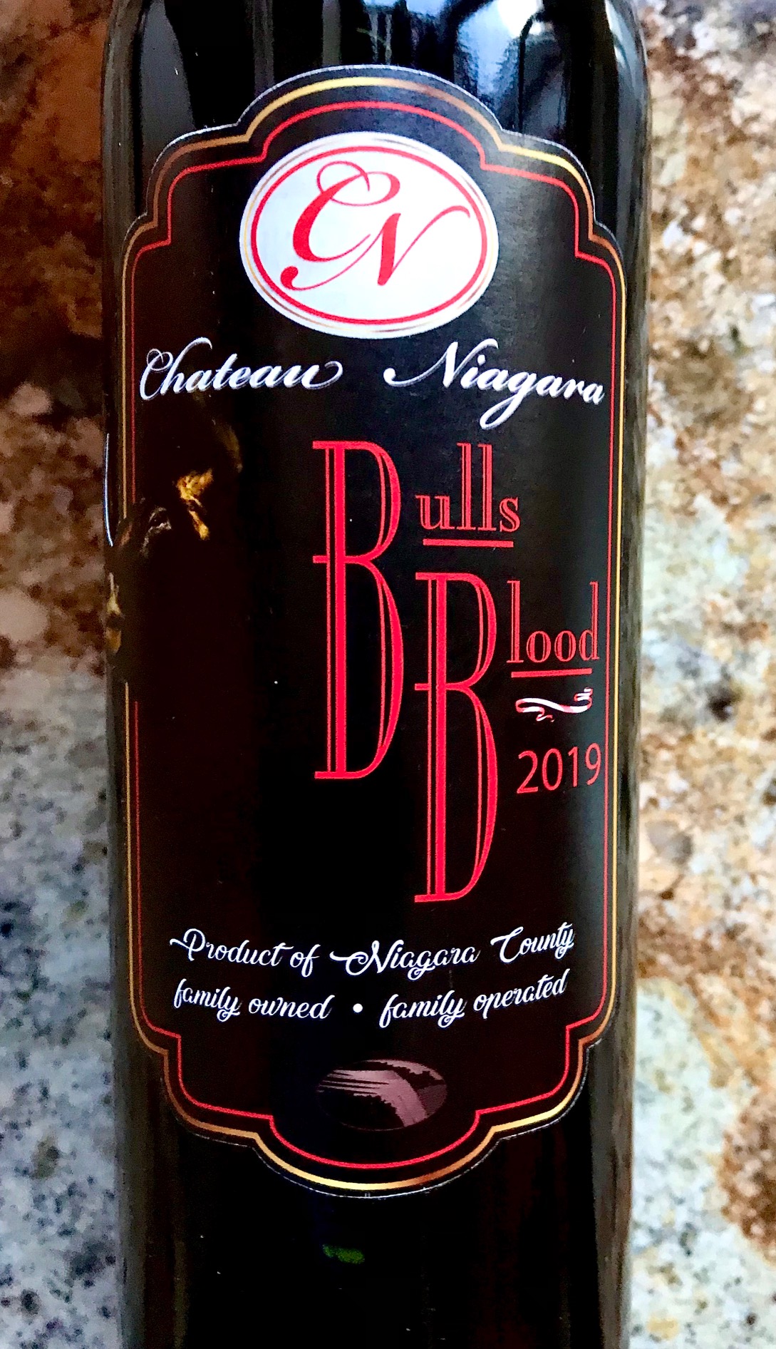 Chateau Niagara Bulls Blood 2019 is a deeply colored dry red wine blend that has a medium body with notes of smoke and flavors of dark berries. It has more than ample acidity to give it complexity. Each grape in the blend contributes something special to the finished wine. Cab Franc supplies the fruit while Lemberger adds the smoke then Turan provides the fire. I suggest decanting it and to consider adding some to your cellar to age for a few years.
