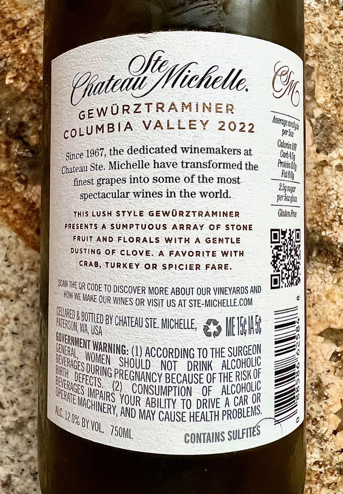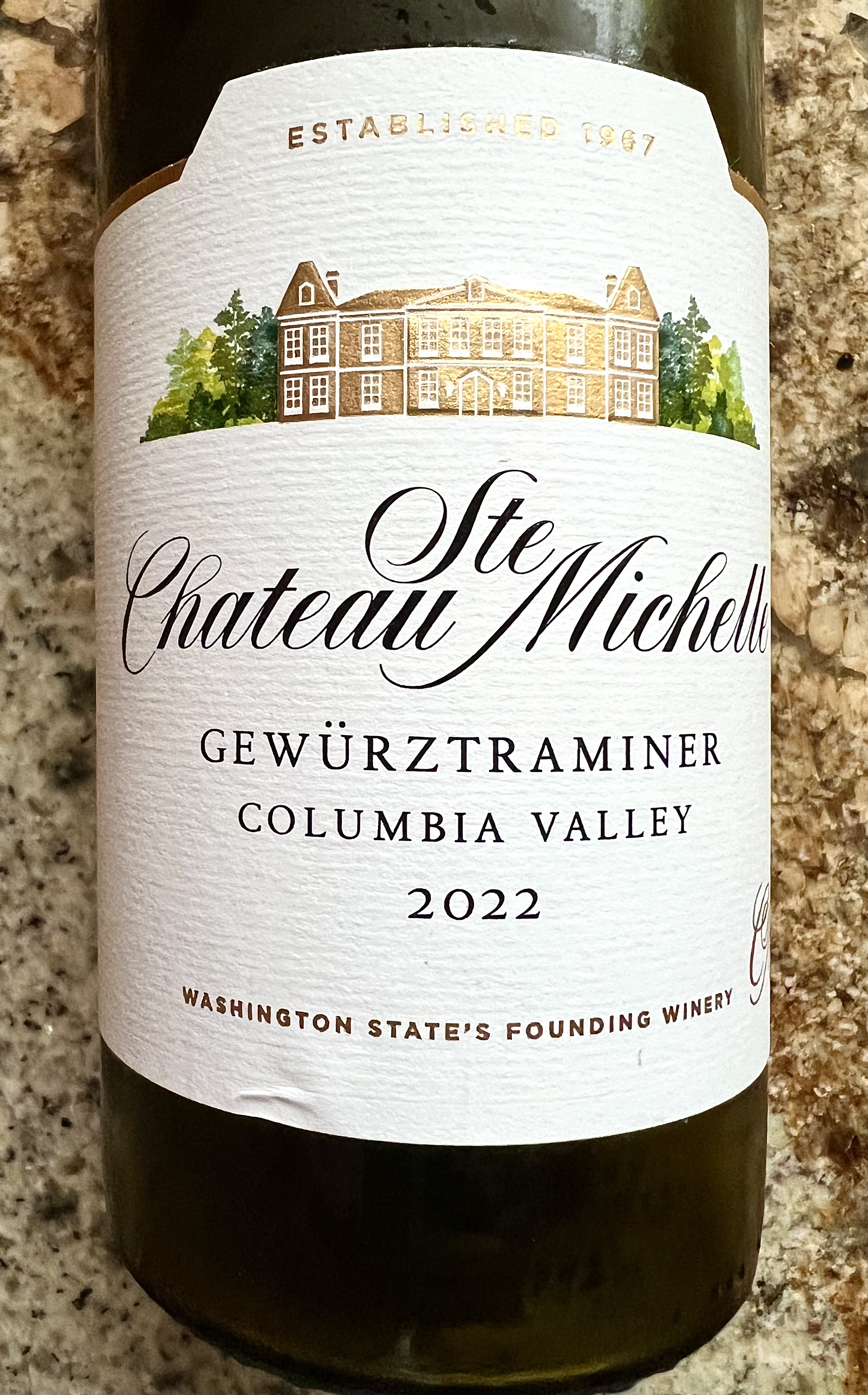 Today’s wine is Chateau Ste Michelle Gewürztraminer Columbia Valley 2022. Chateau Ste Michelle is a mega-winery with an extensive portfolio of wines produced under several labels. Chateau Ste Michelle is again an independent entity after being a subsidiary of tobacco companies for almost forty years.