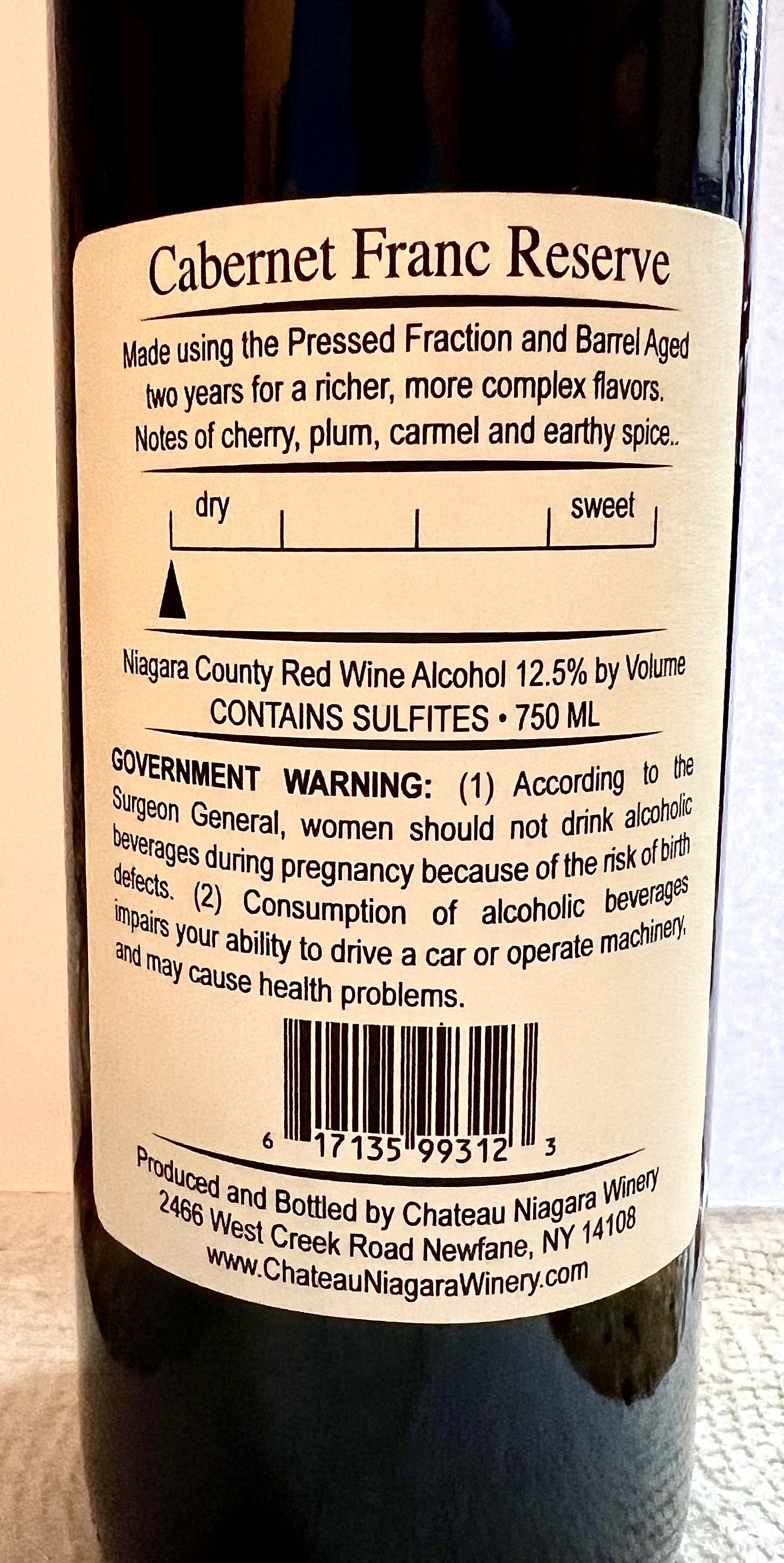 Jim Baker, owner, winemaker, and vigneron of Chateau Niagara Winery Newfane, New York http://chateauniagarawinery.com has a special touch when making high-quality Cabernet Franc. His Chateau Niagara Cabernet Franc Reserve 2020 is no exception. He uses Cabernet Franc grapes grown in his vineyard and a nearby vineyard to produce his award-winning Cab Franc year after year. Jim told me “These are some of the best wines I have made.”