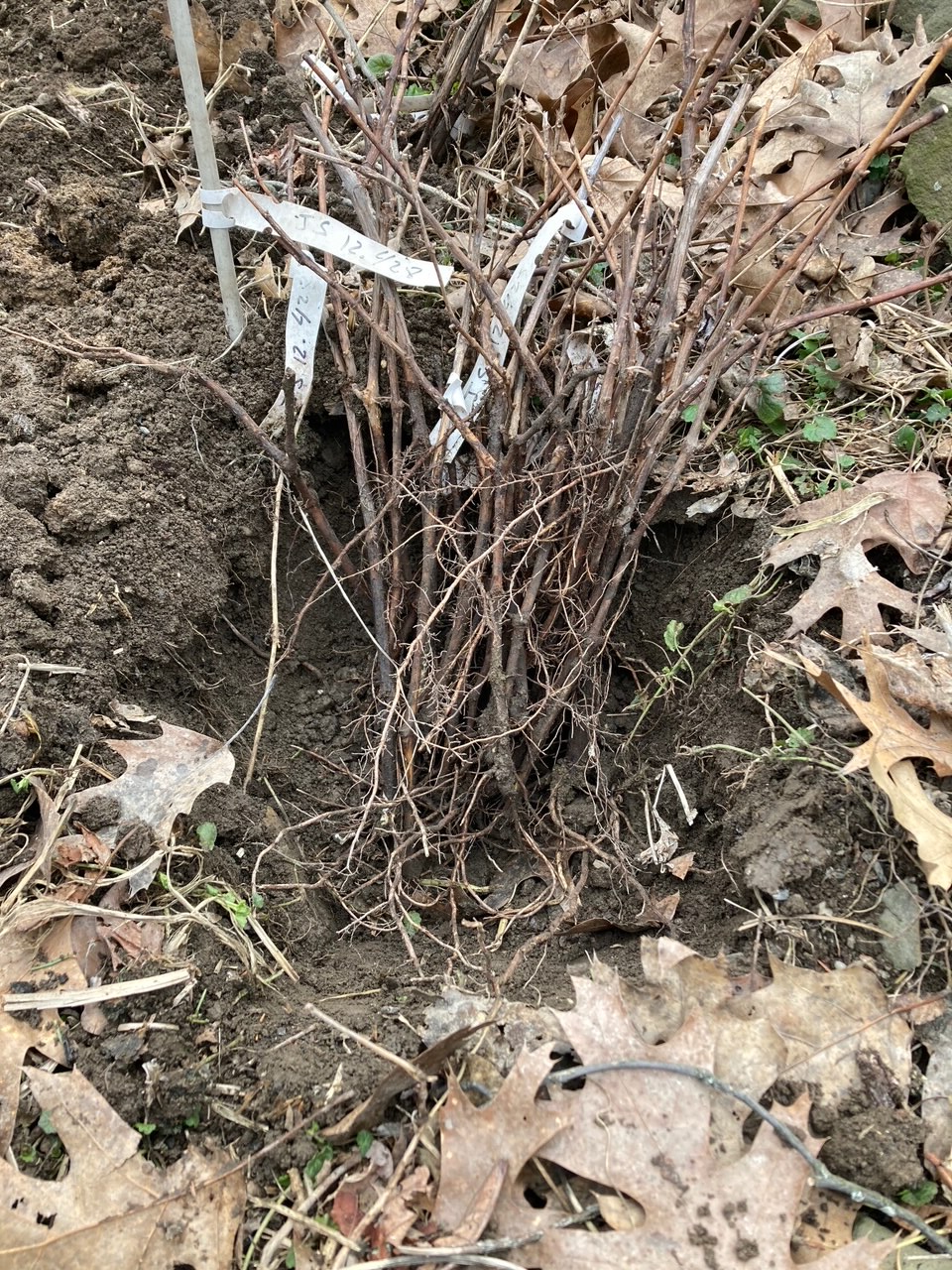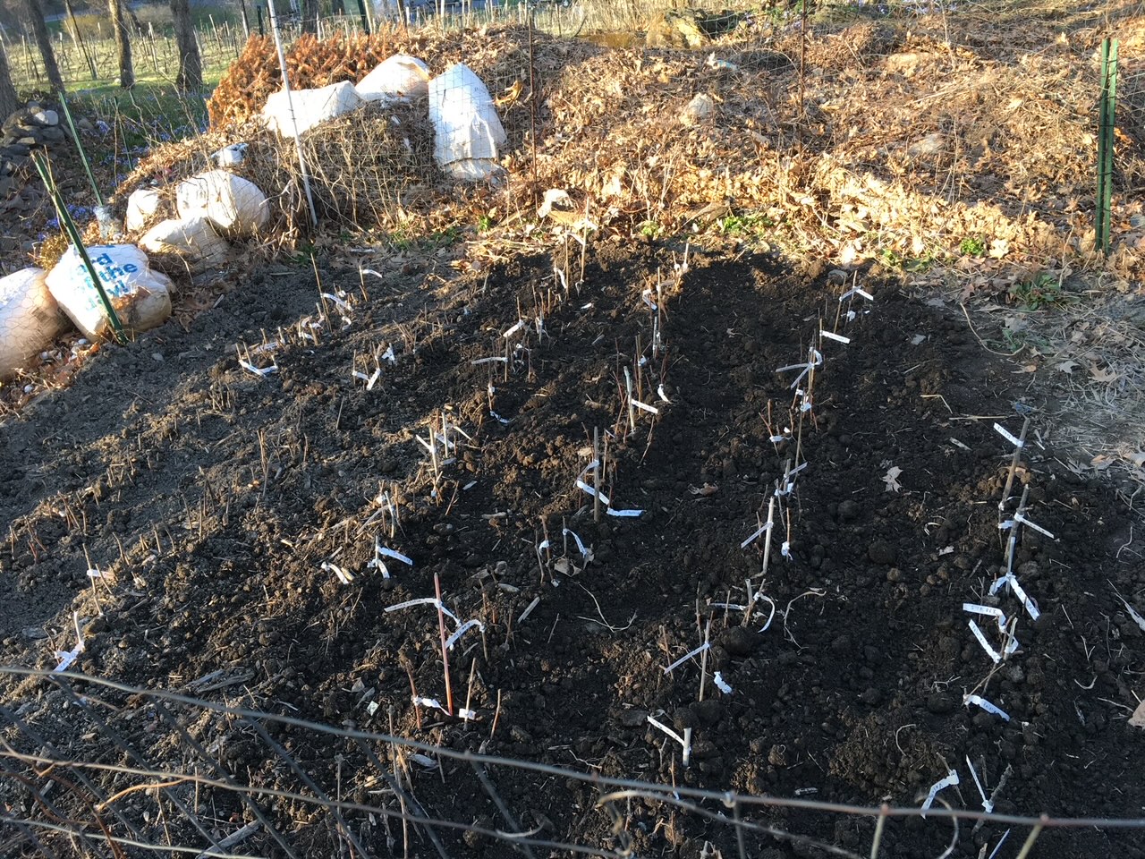 Keep the soil well watered, but not soggy throughout the first year when your cuttings are establishing themselves. For those in potted containers, the cuttings should be placed in a frost-free location with bright indirect sunlight. If you have more than one row of nursery cuttings in your nursery, it is recommended to mulch the cuttings with straw (not hay) to keep down the weeds and retain soil moisture.
